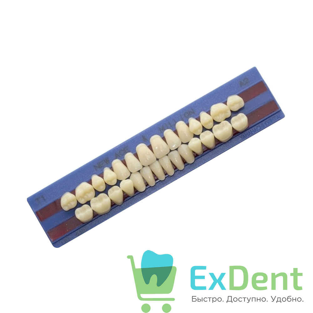 Гарнитур акриловых зубов A1, T1, M30 (28 шт.) — Yamahachi New Ace (фронтальные) & New Million (боковые) для эстетичного и функционального съемного протезирования