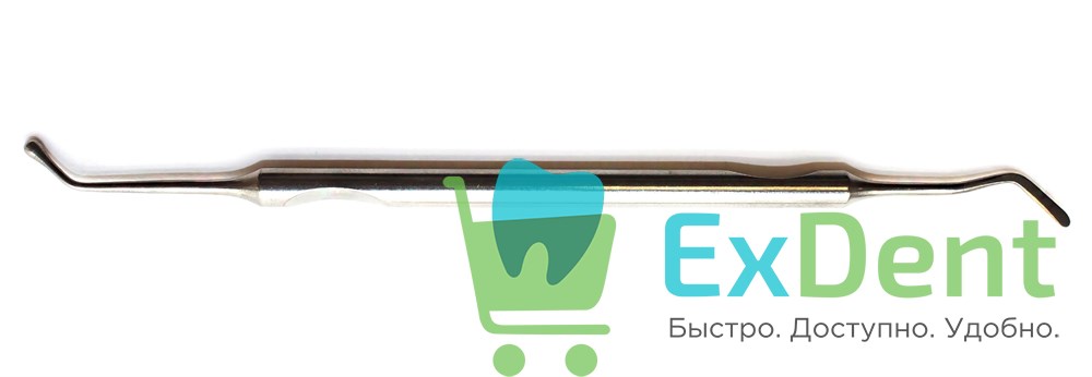 - Первая рабочая часть имеет шаровидное окончание, расположенное относительно ручки под углом 40°.