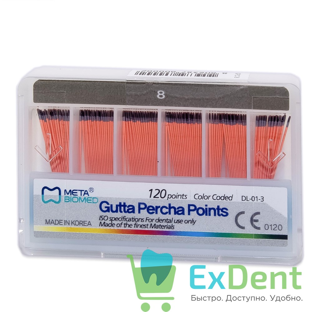 Гуттаперчевые штифты 02 №08 Meta - для пломбирования корневых каналов (120 шт)