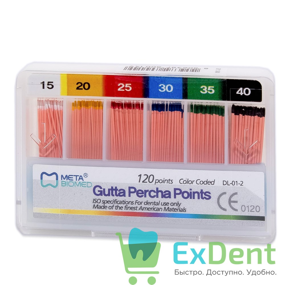 Гуттаперчевые штифты 02 №15-40 Meta - для пломбирования корневых каналов (120 шт)