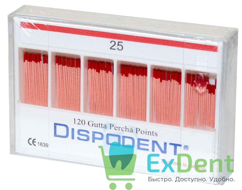 Гуттаперчевые штифты 02 №25 Dispodent - для пломбирования корневых каналов (120 шт)