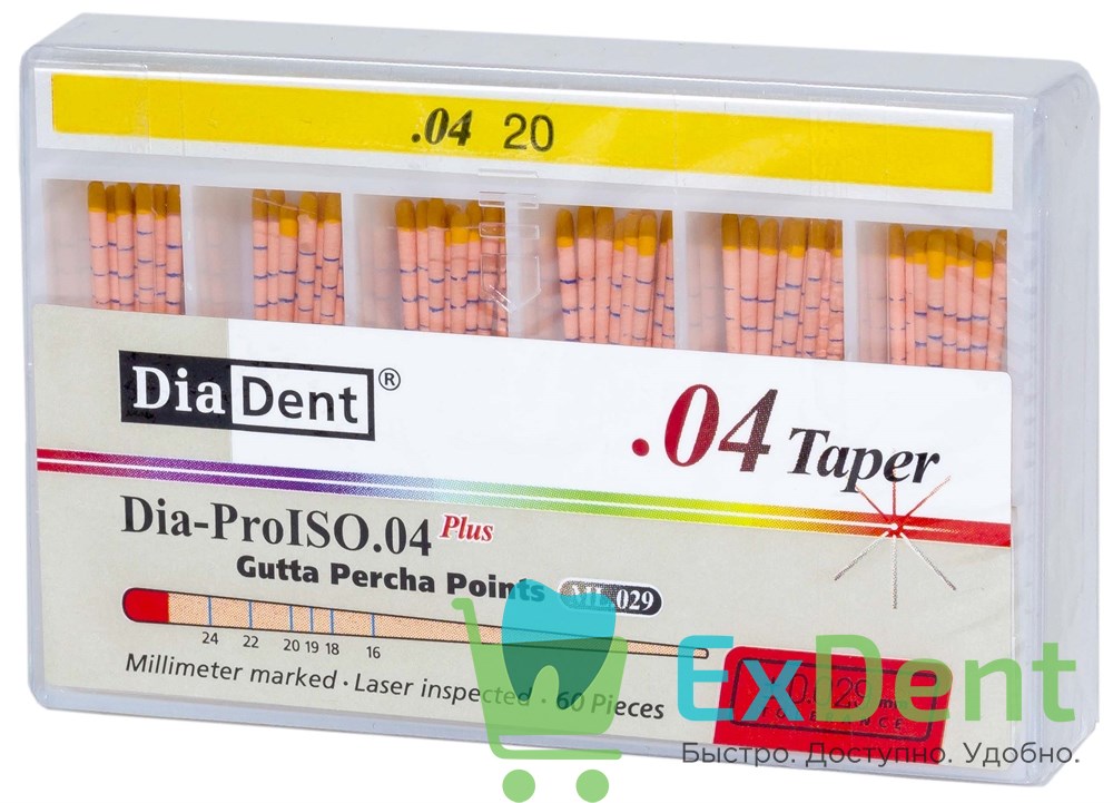 Гуттаперчевые штифты 04 №20 DiaDent для пломбирования корневых каналов (60 шт)