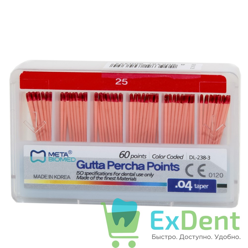 Гуттаперчевые штифты 04 №25 Meta - для пломбирования корневых каналов (60 шт)
