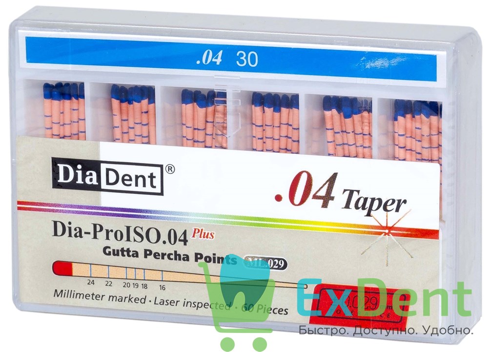 Гуттаперчевые штифты 04 №30 DiaDent для пломбирования корневых каналов (60 шт)