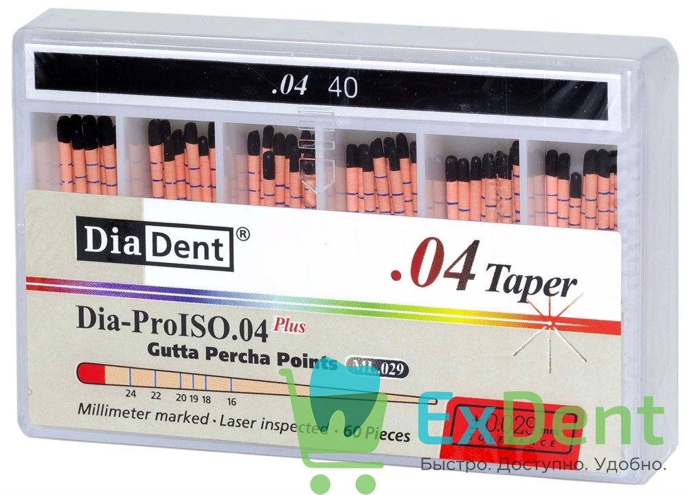 Гуттаперчевые штифты 04 №40 DiaDent для пломбирования корневых каналов (60 шт)