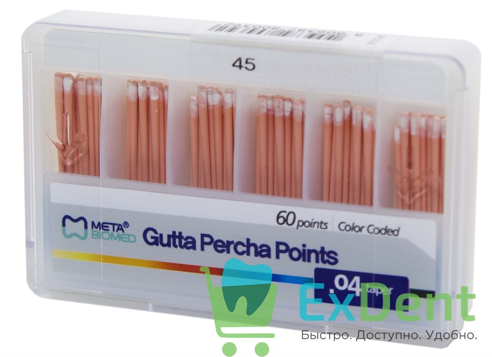 Гуттаперчевые штифты 04 №45 Meta - для пломбирования корневых каналов (60 шт)