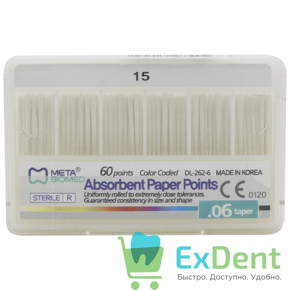 Гуттаперчевые штифты 06 №15 Meta - для пломбирования корневых каналов (60 шт)
