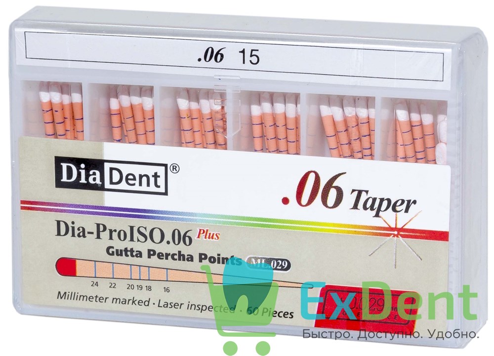 Гуттаперчевые штифты 06 №15 DiaDent для пломбирования корневых каналов (60 шт)