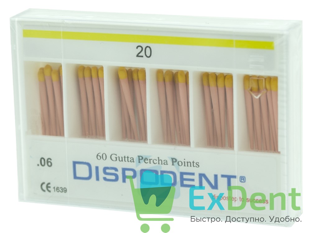 Гуттаперчевые штифты 06 №20 Dispodent для пломбирования корневых каналов (60 шт)