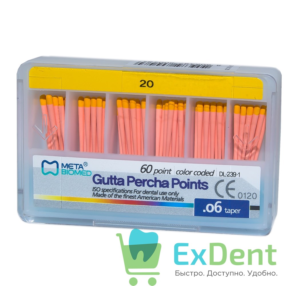 Гуттаперчевые штифты 06 №20 Meta - для пломбирования корневых каналов (60 шт)