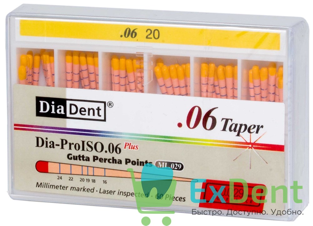 Гуттаперчевые штифты 06 №20 DiaDent для пломбирования корневых каналов (60 шт)