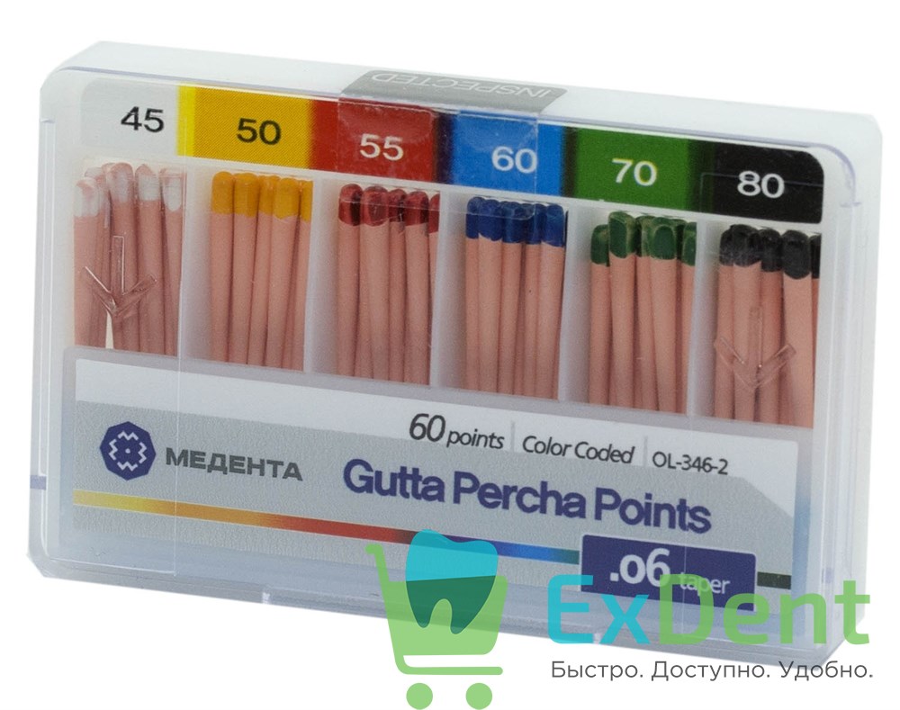 Гуттаперчевые штифты 06 №45-80 Meta - для пломбирования корневых каналов (60 шт)