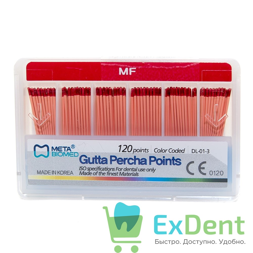 Гуттаперчевые штифты MF Meta - для пломбирования корневых каналов (120 шт)