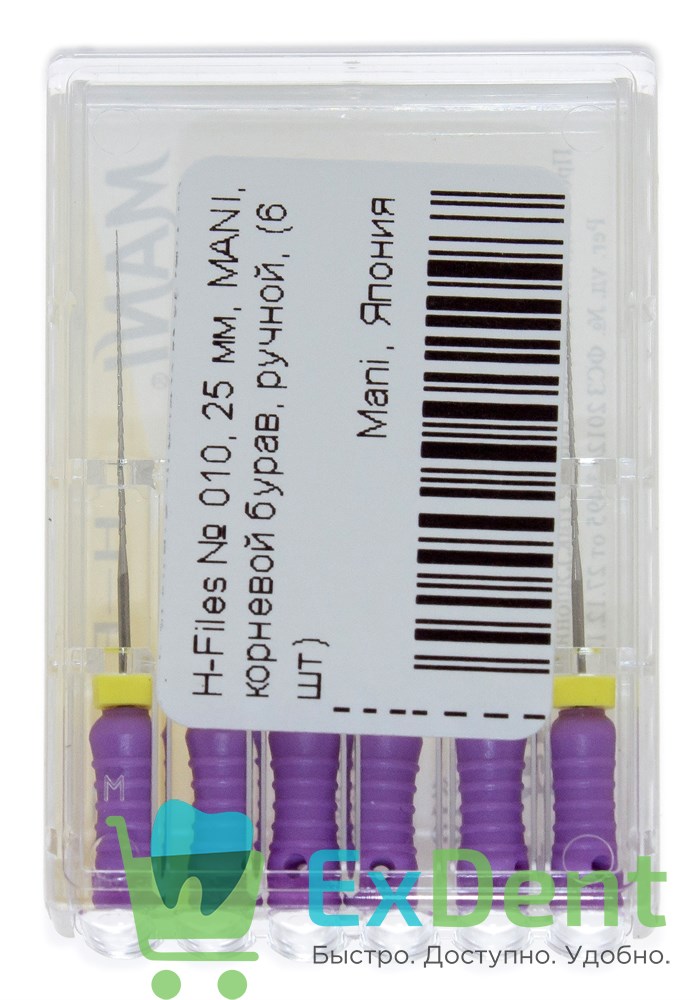 H-Files №10, 25 мм, MANI, корневой бурав, ручной (6 шт)