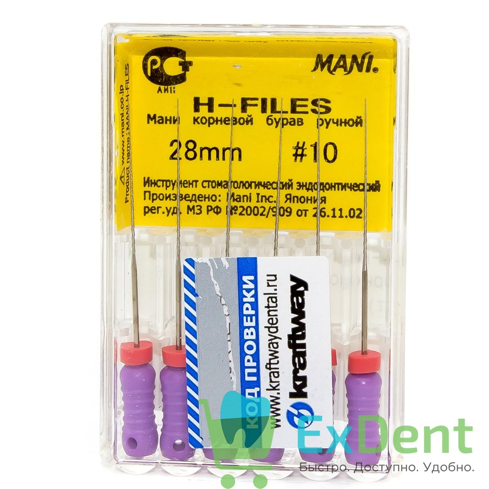 H-Files №10, 28 мм, MANI, корневой бурав, ручной (6 шт)