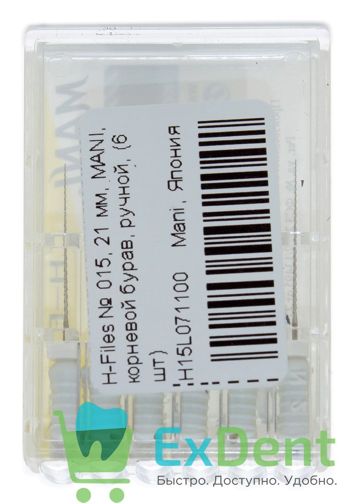 H-Files №15, 21 мм, MANI, корневой бурав, ручной (6 шт)
