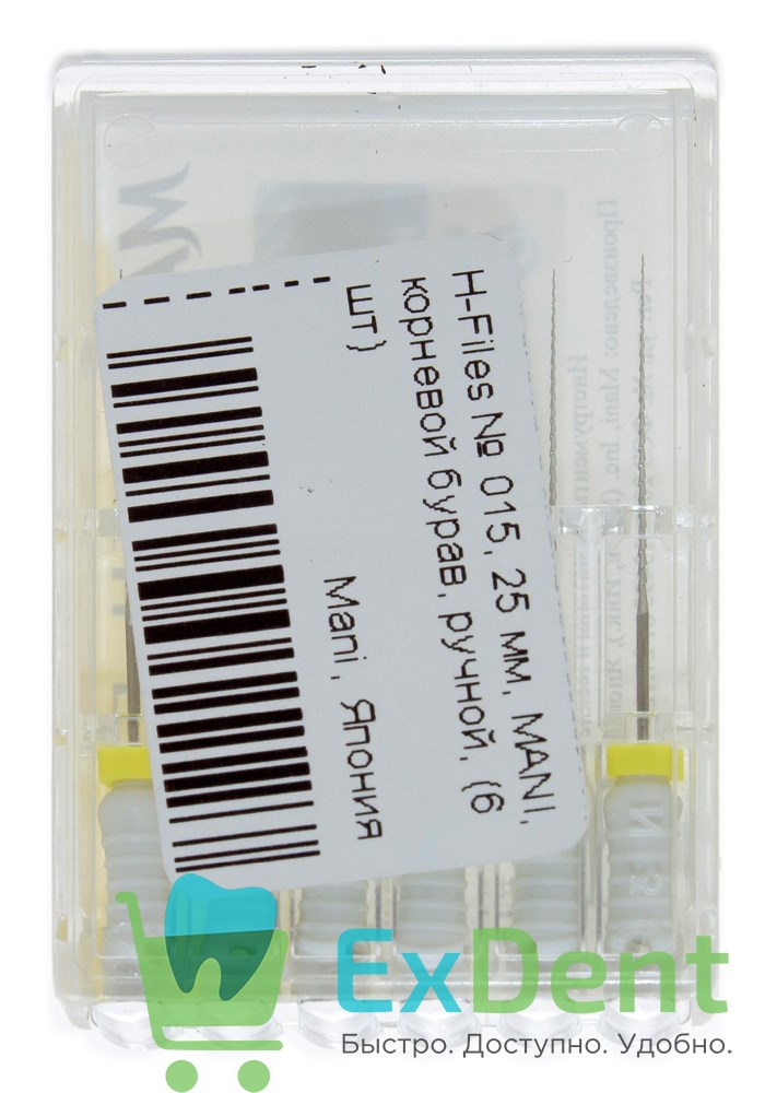 H-Files №15, 25 мм, MANI, корневой бурав, ручной (6 шт)