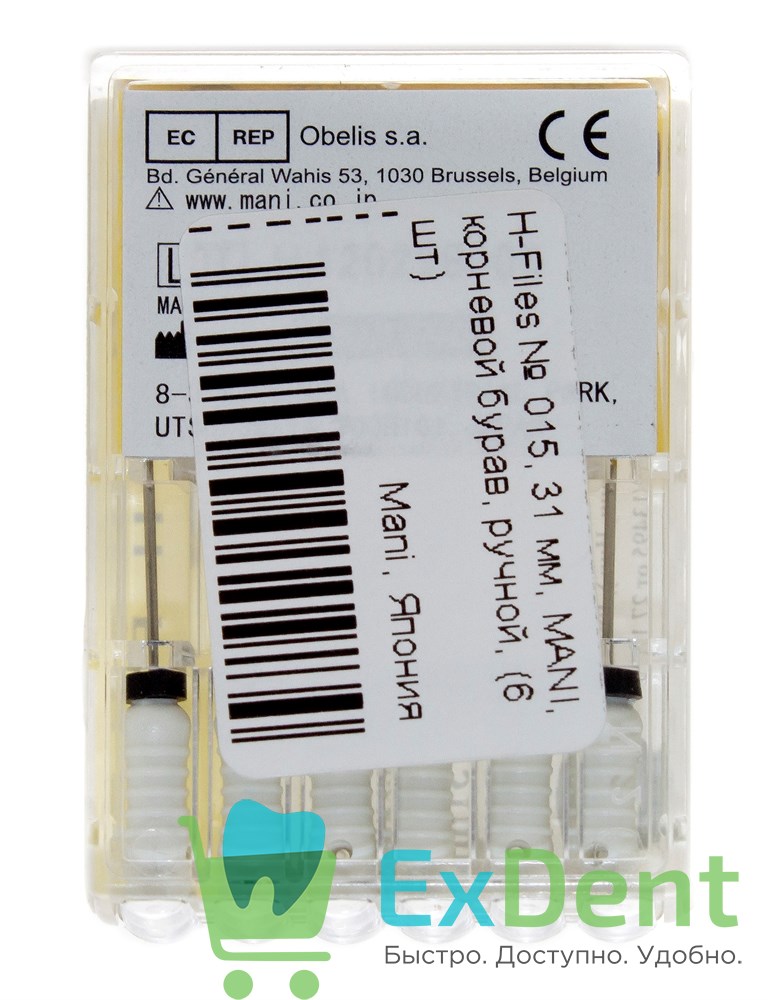 H-Files №15, 31 мм, MANI, корневой бурав, ручной (6 шт)