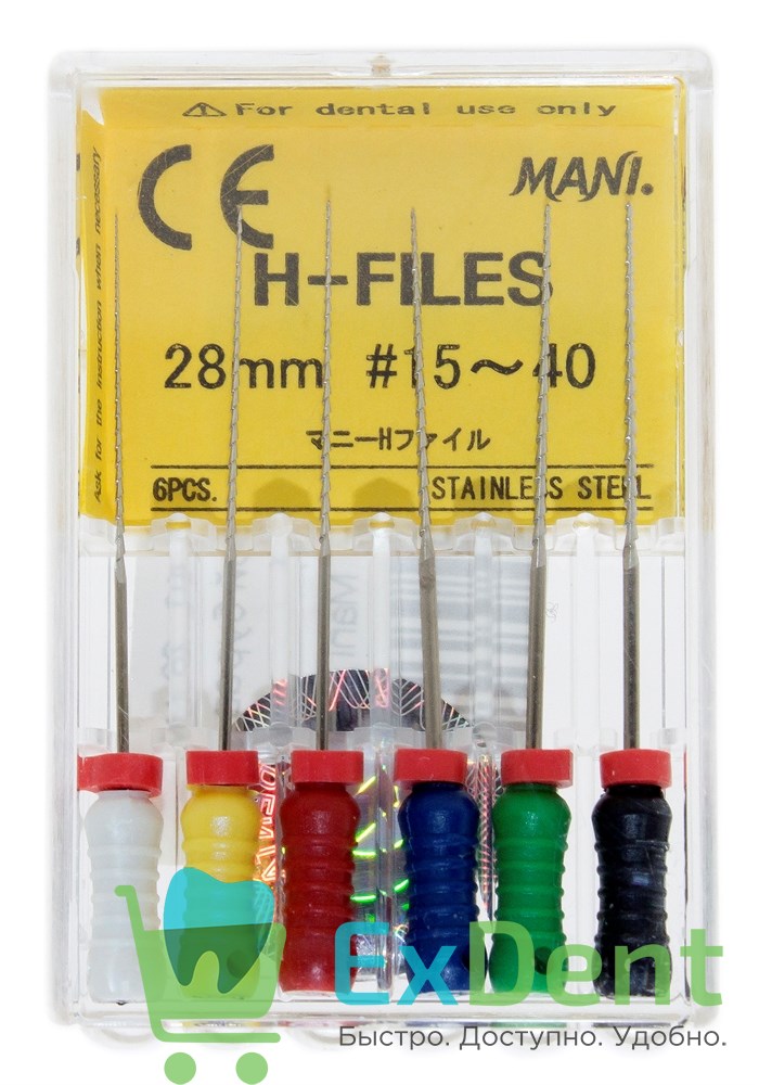 H-Files №15-40, 28 мм, MANI, корневой бурав, ручной (6 шт)