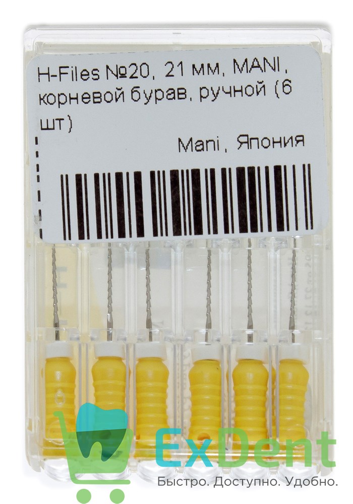 H-Files №20, 21 мм, MANI, корневой бурав, ручной (6 шт)
