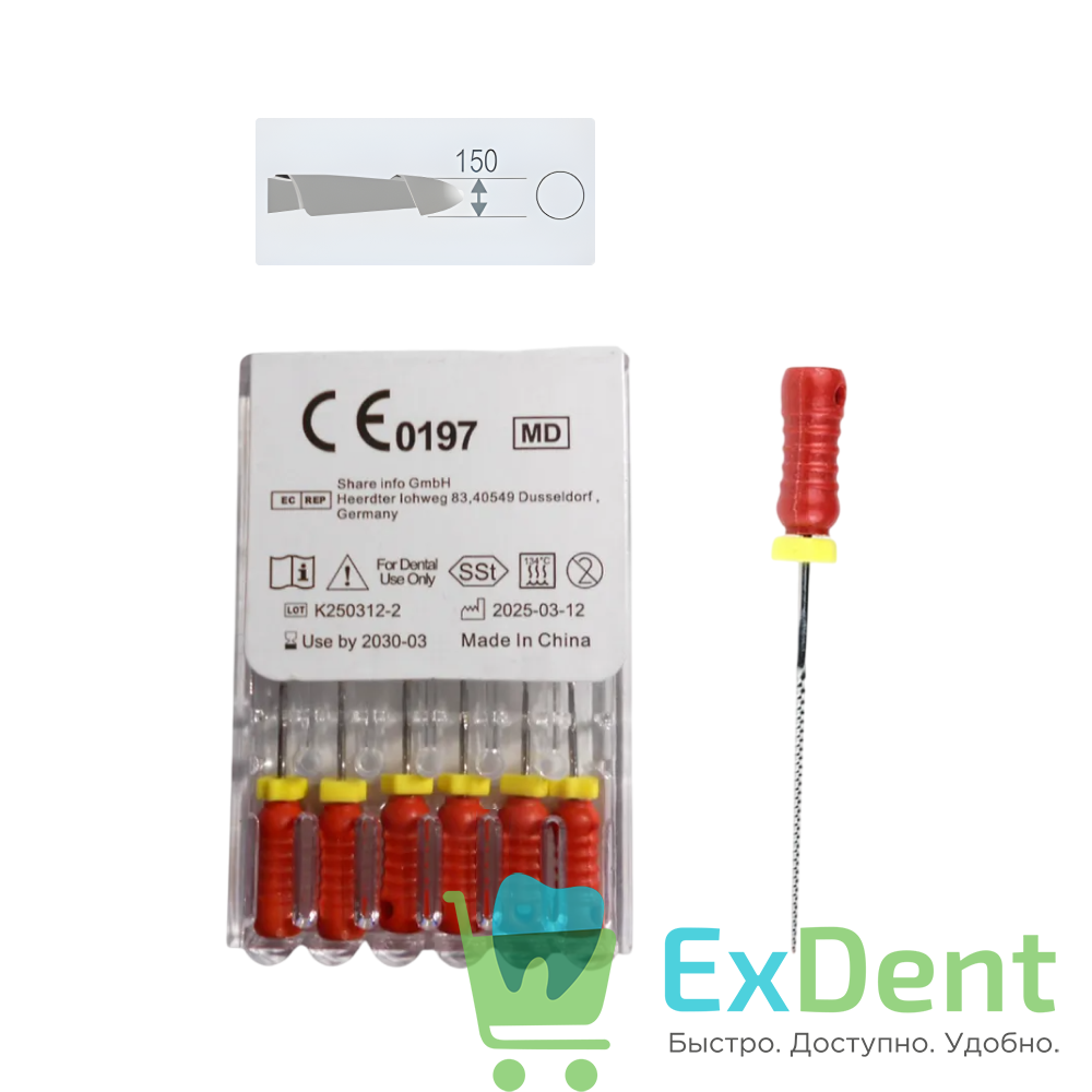 H-Files №25, 25 мм, DENCO, корневой бурав, ручной (6 шт)