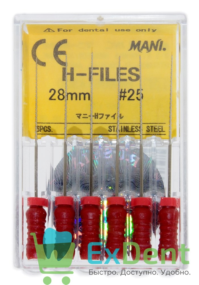H-Files №25, 28 мм, MANI, корневой бурав, ручной (6 шт)