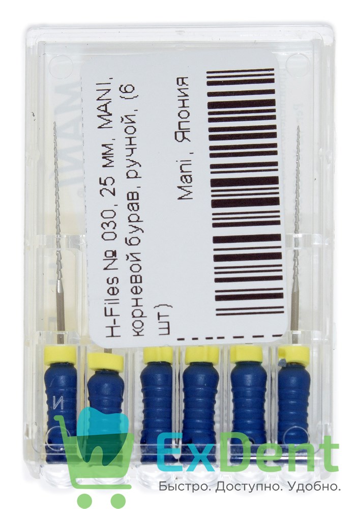H-Files №30, 25 мм, MANI, корневой бурав, ручной (6 шт)