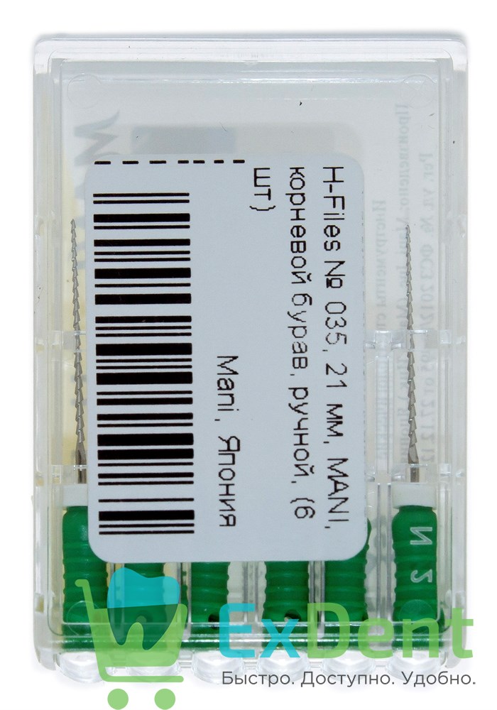 H-Files №35, 21 мм, MANI, корневой бурав, ручной (6 шт)