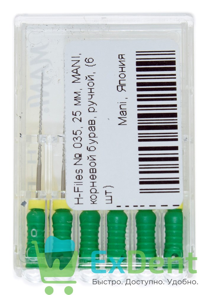 H-Files №35, 25 мм, MANI, корневой бурав, ручной (6 шт)