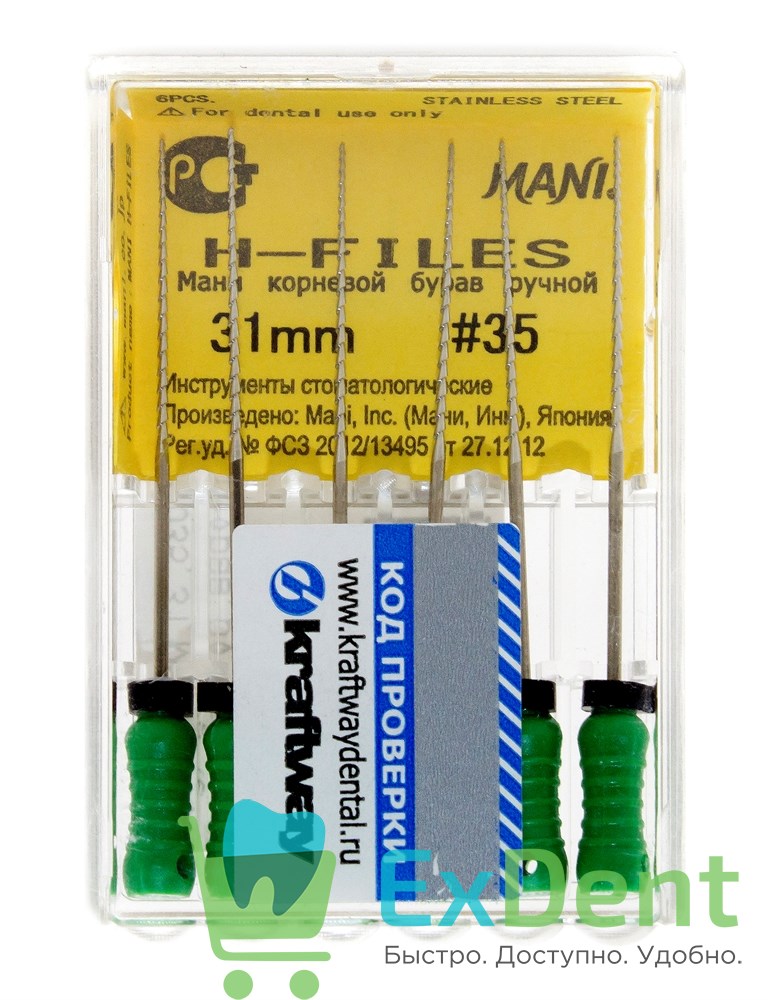 H-Files №35, 31 мм, MANI, корневой бурав, ручной (6 шт)