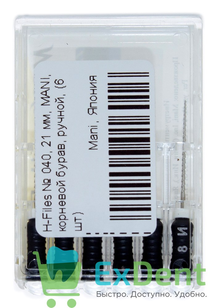 H-Files №40, 21 мм, MANI, корневой бурав, ручной (6 шт)
