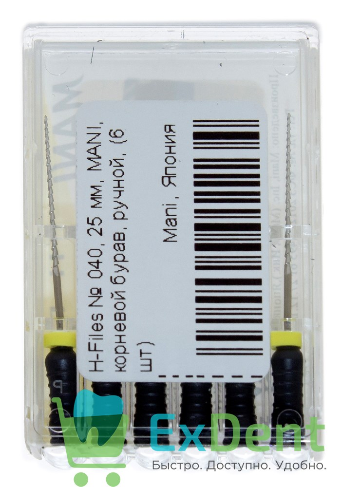 H-Files №40, 25 мм, MANI, корневой бурав, ручной (6 шт)