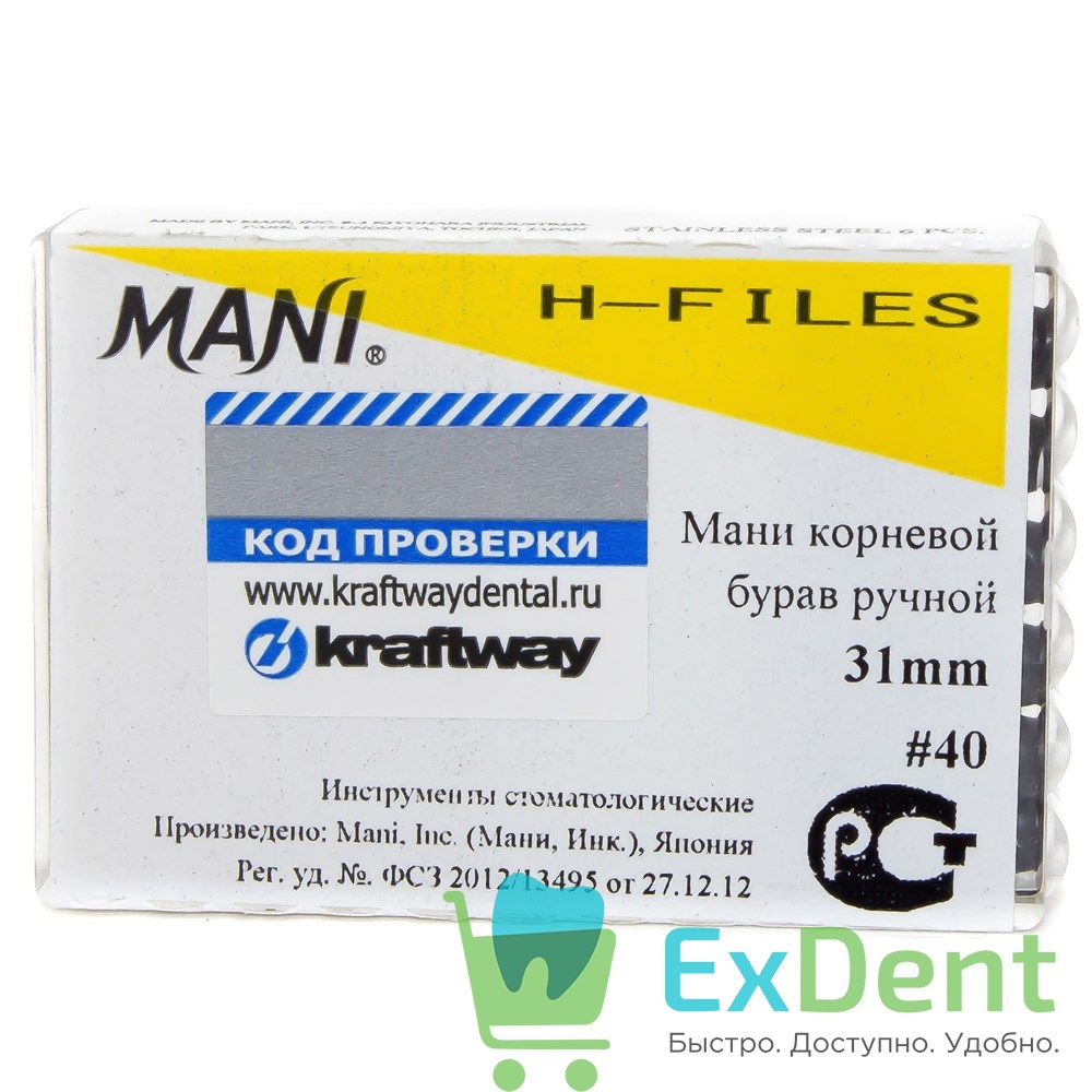 H-Files №40, 31 мм, MANI, корневой бурав, ручной (6 шт)