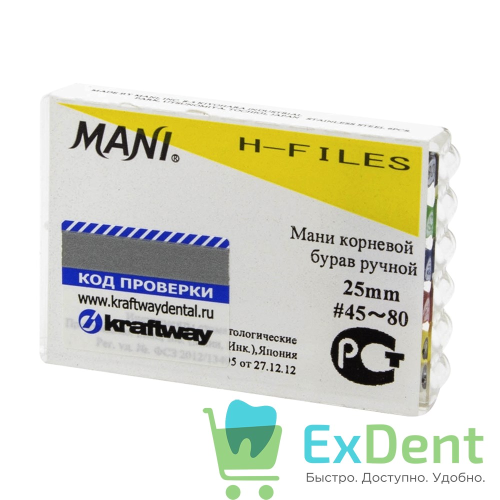 H-Files №45-80, 25 мм, MANI, корневой бурав, ручной (6 шт)