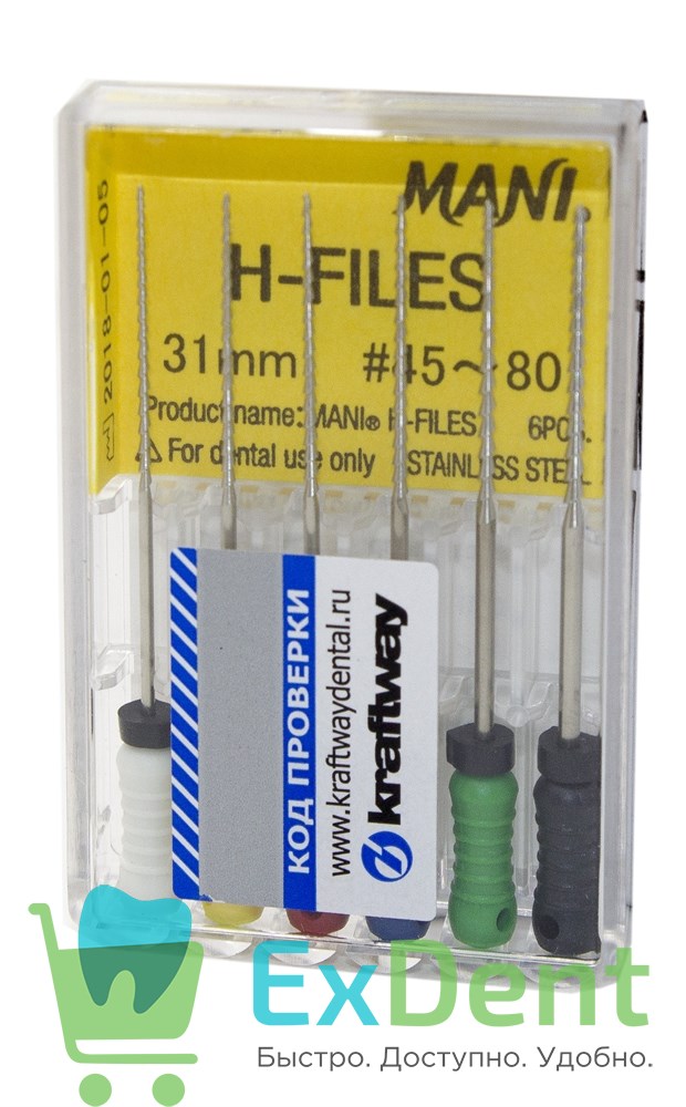H-Files №45-80, 31 мм, MANI, корневой бурав, ручной (6 шт)