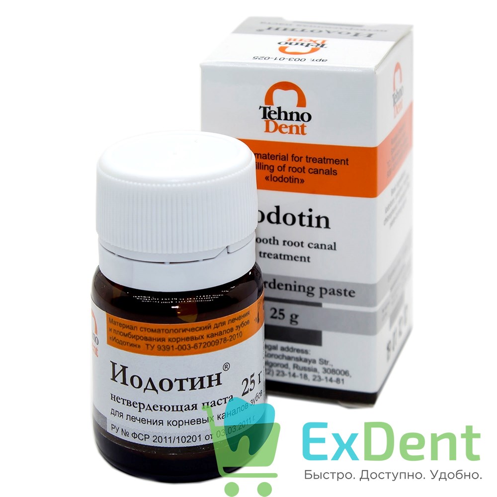 Иодотин нетвердеющая паста - для лечения корневых каналов зубов (25 г)