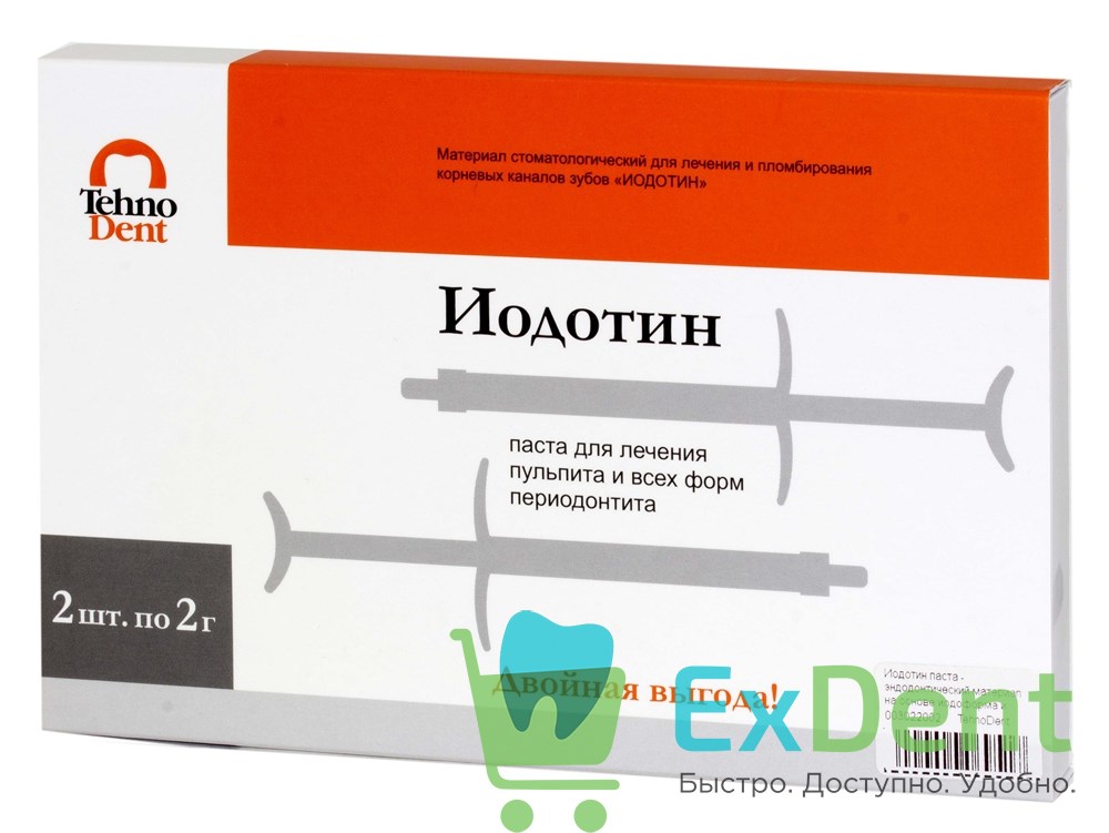 Иодотин паста - эндодонтический материал на основе иодоформа и гидроокиси кальция (2 х 2 г)