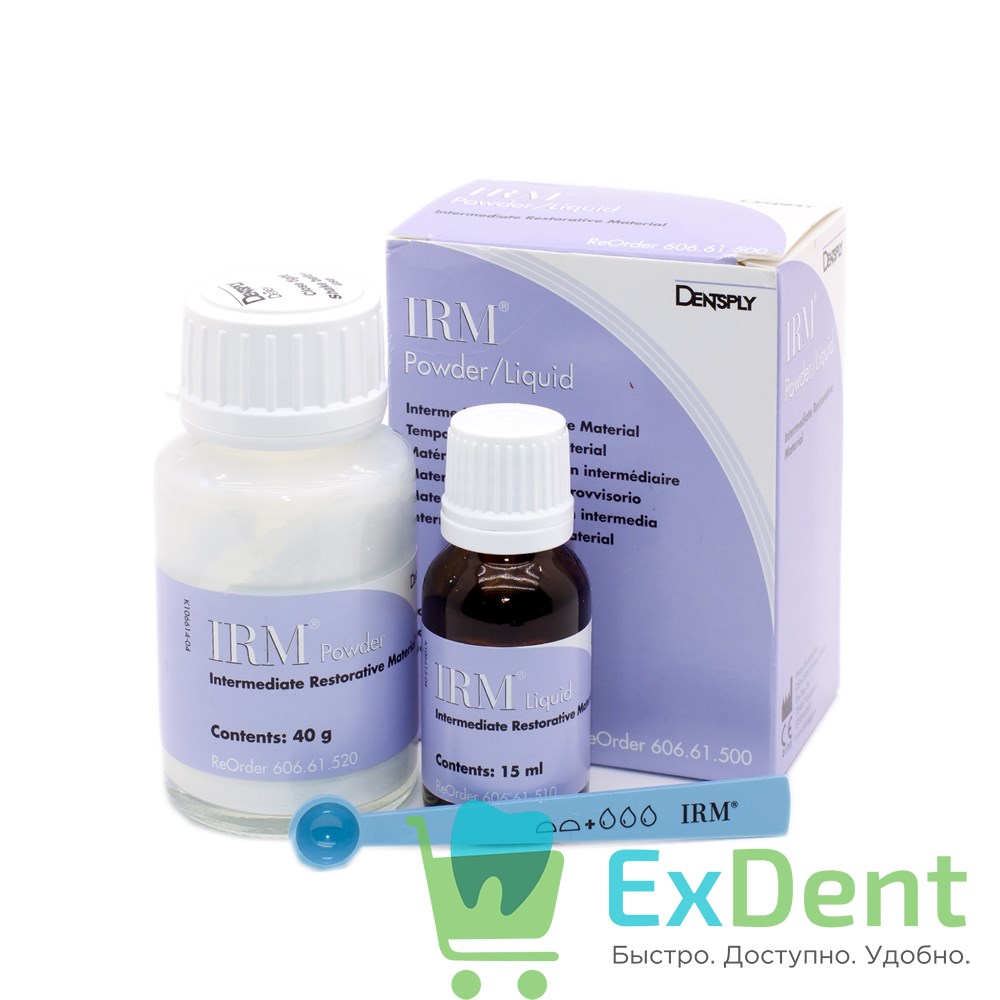 IRM - это цинк-оксид-эвгенольный цемент, усиленный полиметилметакрилатной смолой (PMMA) для временных реставраций (до 1 года) и для создания прокладки. IRM® - «промежуточный» временный пломбировочный материал. В клиническом исследовании он сравнивался с другими цинкфосфатными цементами и цементами на основе эвгенола с этоксибензоидной кислотой.
