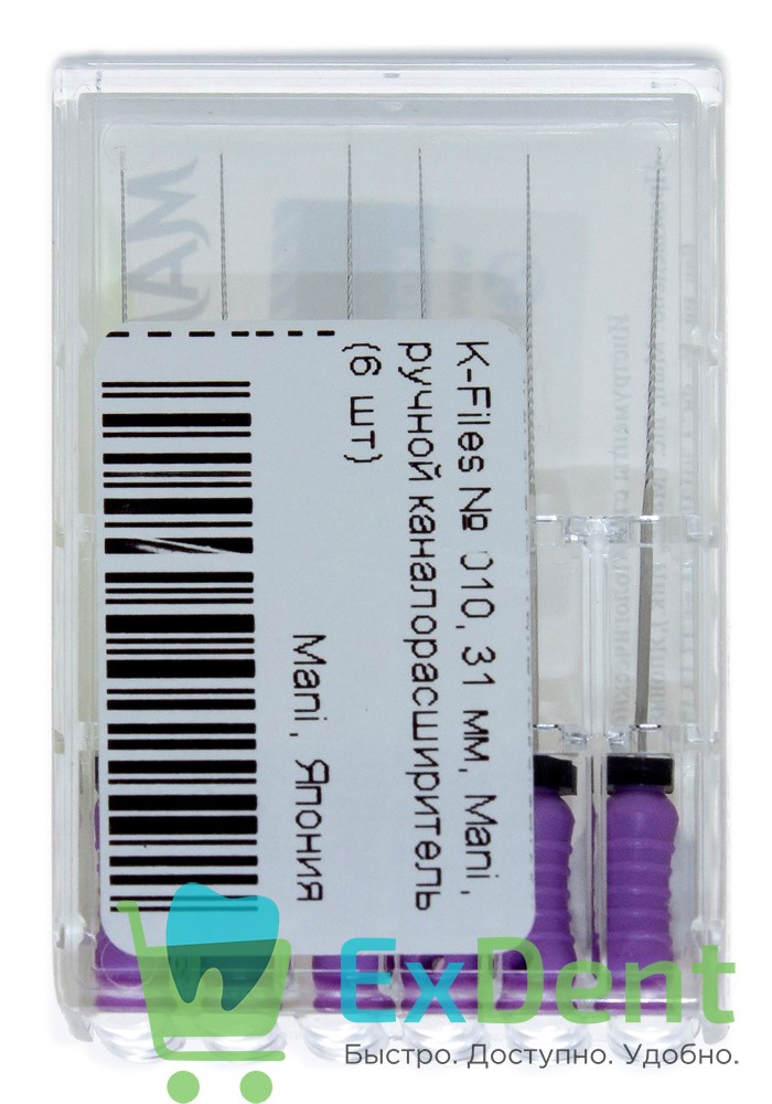K-Files №10, 31 мм, Mani, ручной каналорасширитель (6 шт)