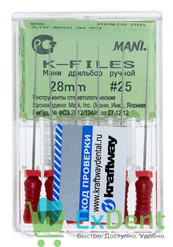 K-Files №25, 28 мм, Mani, ручной каналорасширитель (6 шт)