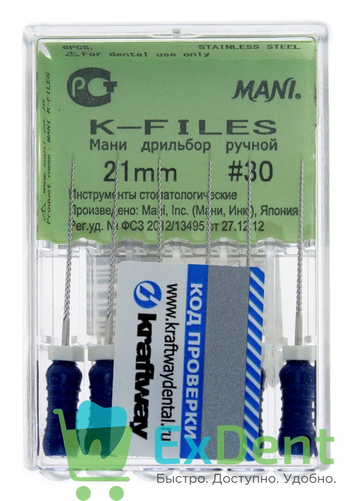K-Files №30, 21 мм, Mani, ручной каналорасширитель (6 шт)