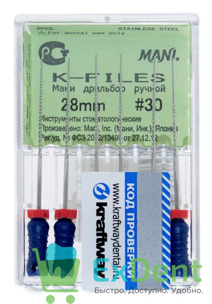 K-Files №30, 28 мм, Mani, ручной каналорасширитель (6 шт)