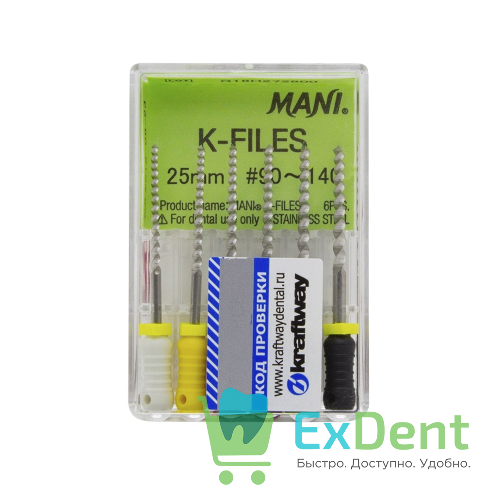 K-Files (К-файлы) MANI — это высококачественные эндодонтические инструменты ручного применения, предназначенные для механической обработки корневых каналов. Изделия производства японской компании MANI, Inc. (всемирно известного производителя стоматологического инструментария) обеспечивают надежное прохождение и расширение каналов любой сложности, включая сильно искривленные анатомические образования. Данный набор содержит инструменты большого диаметра — №90, 100, 110, 120, 130, 140 — длиной 31 мм, что делает его идеальным выбором для финишного расширения широких каналов и удаления остатков пульпы.