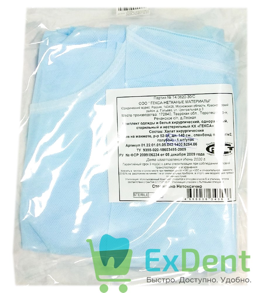 Халат операционный хирургический, 52/54, стерильный, 42гр/м2, 110 см
