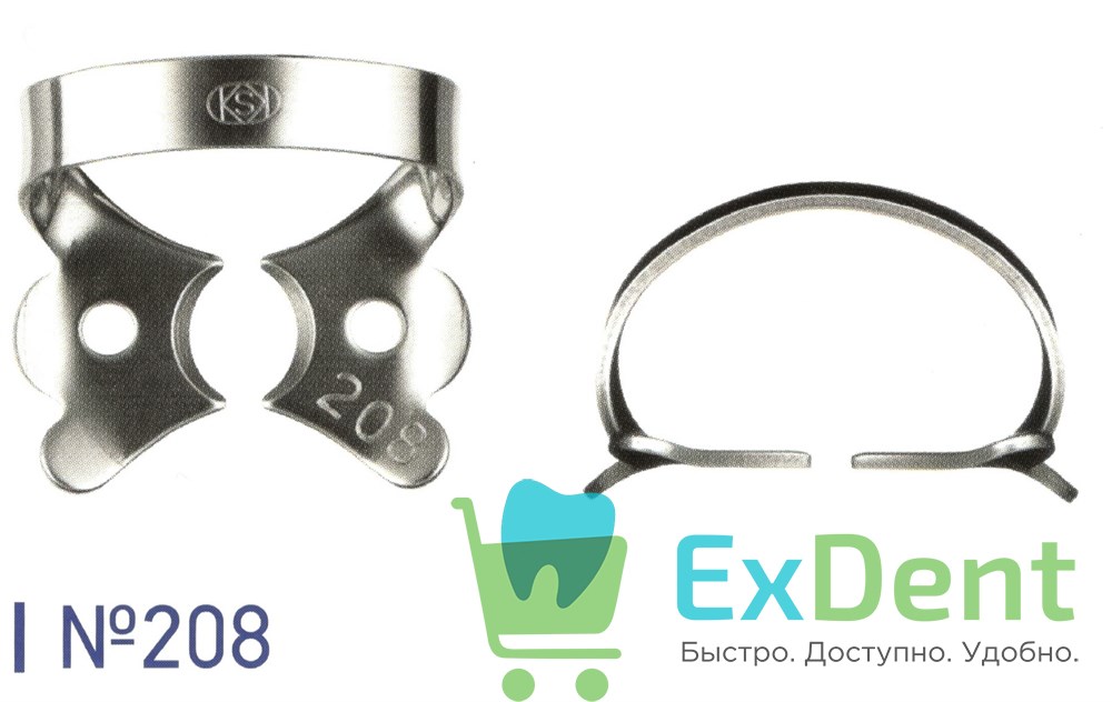 Кламп для клыков и премоляров верхней и нижней челюсти, для зубов с незначительными разрушениями коронковой части, сохраненной ферулой и выраженным экватором. Латеральные крылья большого размера. Щечки клампа плоские. Для премоляров крупного размера.