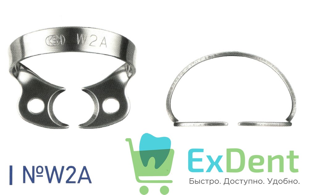 Кламп для клыков и премоляров верхней и нижней челюсти, для зубов с незначительными разрушениями коронковой части, сохраненной ферулой и выраженным экватором. Латеральные крылья отсутствуют. Щечки плоские, среднего радиуса.