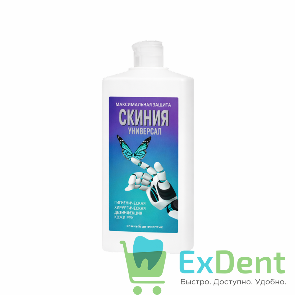 Кожный антисептик «Скиния Универсал» (ООО «БОЗОН», Россия) — это готовый к применению спиртовой раствор с суммарным содержанием спиртов 70–75% и биоцидными добавками, предназначенный для гигиенической и хирургической обработки рук медицинского персонала, антисептической обработки операционных и инъекционных полей, локтевых сгибов доноров, а также для дезинфекции небольших поверхностей и медицинского оборудования. Упаковка объемом 1 литр представляет собой экономичное решение для стоматологических клиник, косметологических центров, лабораторий, предприятий общественного питания и других учреждений, где требуется высокий уровень антимикробной защиты.
