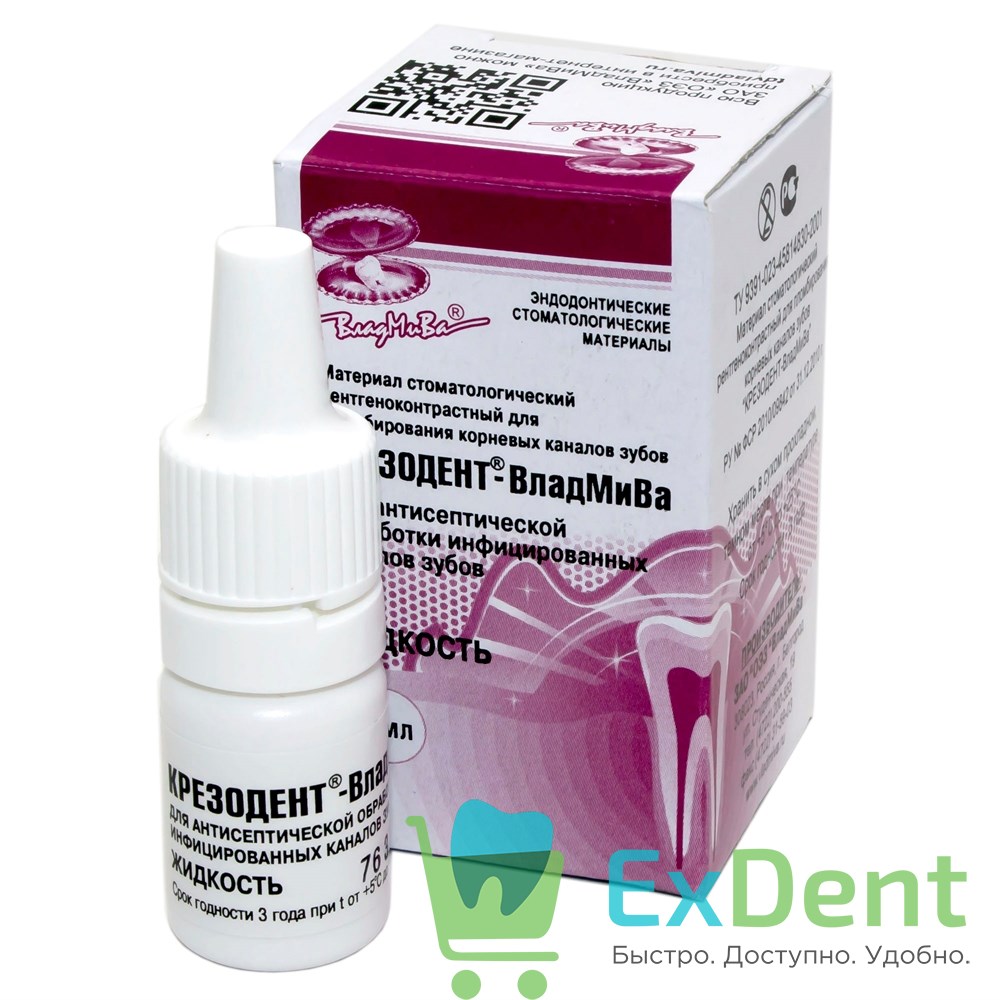 Жидкость «Крезодент-ВладМиВа» широко применяется при эндодонтических вмешательствах в качестве активного антисептика местного действия. Препарат представляет собой жидкость, содержащую в своем составе: