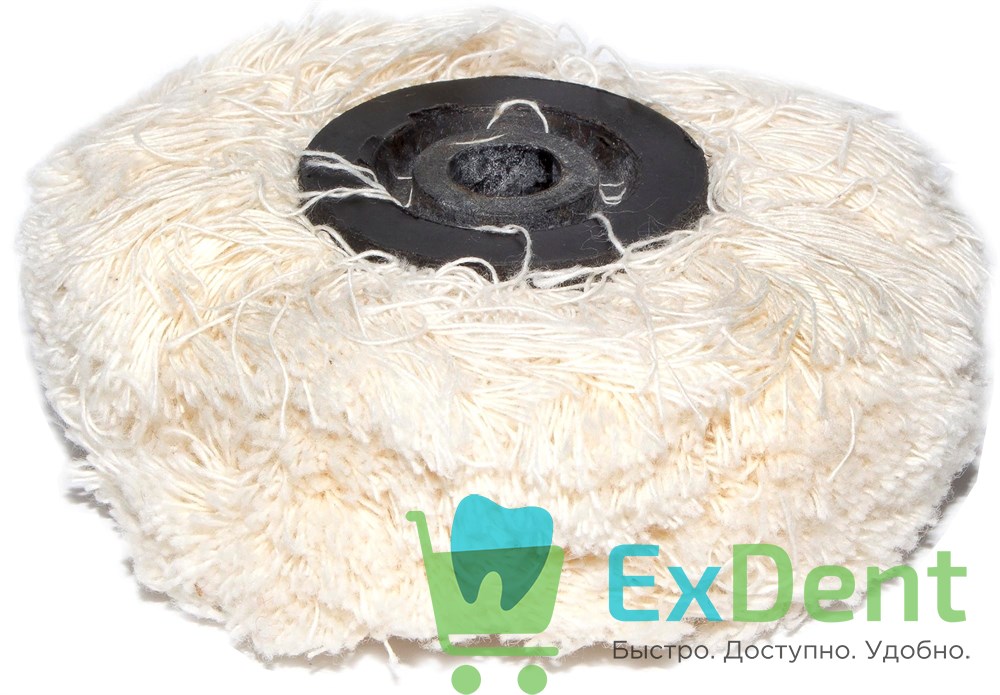 Круг (щетка пушок) 95 мм, полировочный из х/б нити, белая втулка