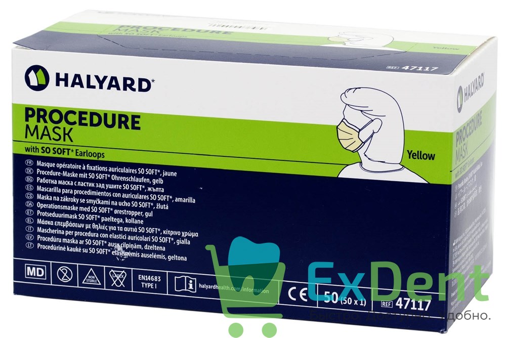 Маски медицинские желтые Procedure Yellow, трехслойные, на резинках (50 шт)